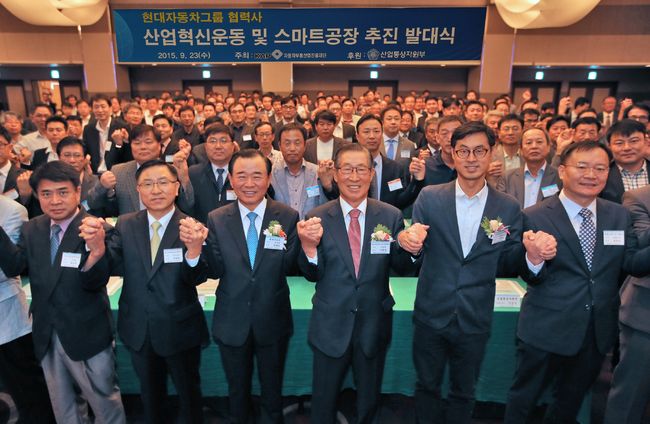 현대차그룹은 자동차부품산업진흥재단과 함께 23일 대전 리베라호텔에서 이영섭 자동차부품산업진흥재단 이사장과 박광식 현대차그룹 부사장, 산업통상자원부 관계자, 150개 협력사 대표 등 260여명이 참석한 가운데 ‘스마트공장 추진 발대식’을 가졌다.