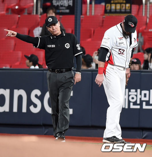 1회초 1사 1,2루에서 삼성 최형우의 선제 적시타 타구에 1루심이 파울이 아닌 안타를 선언하자 kt 댄블랙이 아쉬워하고 있다.