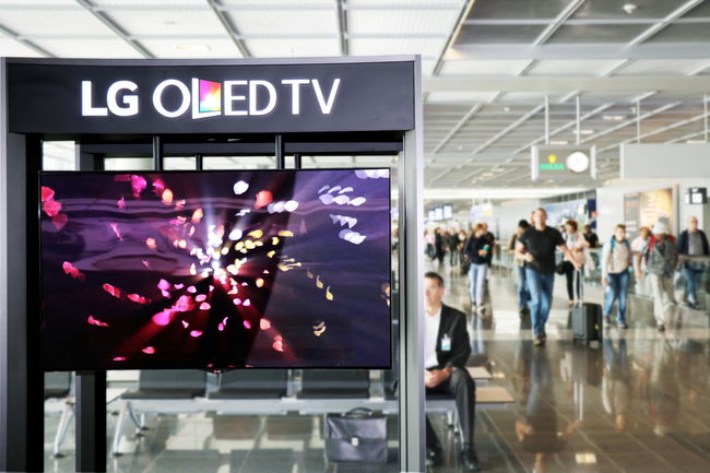 LG전자는 이달 들어 미국 뉴욕 JFK 공항, 유럽의 관문인 독일 프랑크푸르트 공항, 러시아 쉐르메체보 공항 등 23개국 39개 주요 공항에 올레드 TV를 설치하고 있다. LG전자는 국내 8개 공항을 포함해 10월 말까지 23개국 39개 공항에 200여 대의 올레드 TV 설치를 완료한다는 계획이다.