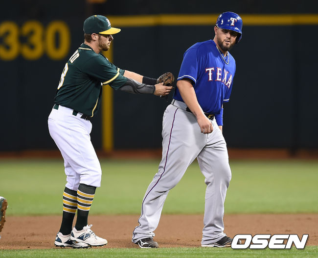24일(한국 시각) 미국 캘리포니아주 오클랜드 O.co 콜리세움에서 '2015 메이저리그' 오클랜드 어슬레틱스와 텍사스 레인저스의 경기가 열렸다.