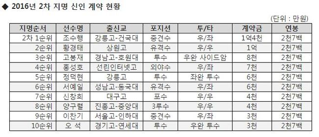 두산베어스(社長 金承榮)는 24일(목), 2016년 2차 지명 신인 선수 10명 전원과 입단 계약을 모두 마쳤다.