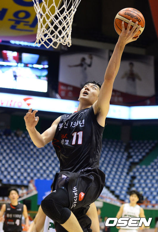 24일 오후 부산 사직체육관에서 열린 '2015-2016 KCC프로농구' 부산 KT와 원주 동부와의 경기, 3쿼터 KT 박철호가 슛을 하고 있다.