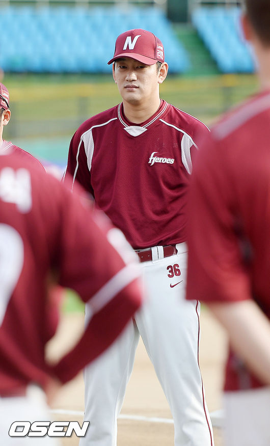 25일 오후 대전광역시 한화생명이글스파크에서 '2015 타이어뱅크 KBO 리그' 한화 이글스와 넥센 히어로즈의 경기가 열릴 예정인 가운데 양 팀 훈련시간에 넥센 양훈이 생각에 잠겨있다.