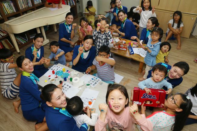 에어부산(대표 한태근)의 캐빈승무원들로 구성된 봉사동아리 블루엔젤이 지난 24일 추석 명절을 맞이해 부산 소재 보육원(온천장) 어린이들을 방문했다. 보육원 소속 아이들 20여명과 마술쇼 등 놀이시간을 갖고, 추석빔을 전달하는 행사를 가졌다.