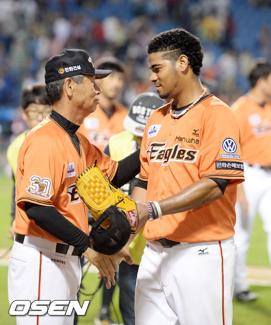김성근 한화 이글스 감독이 완봉승을 거둔 에스밀 로저스를 칭찬했다.