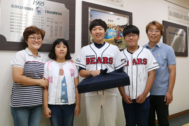 그리고 3년이 지난 올해, 한 군은 건강을 회복했다. 이에 추석을 맞이해 한 군의 아버지인 한정섭 씨는 구단에 감사 편지와 함께 선물을 보냈다. 그리고 한 군은 26일 직접 잠실구장을 찾아 정수빈과 인사도 나눌 수 있었다.