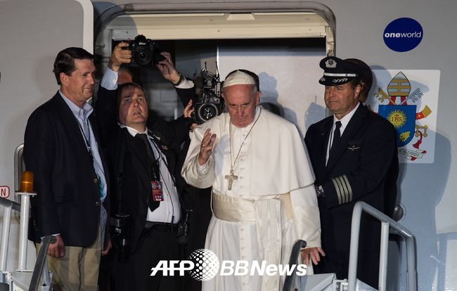 [OSEN=이슈팀] 프랑치스코 교황이 생애 첫 미국방문을 마치고, 본국으로 귀국했다.