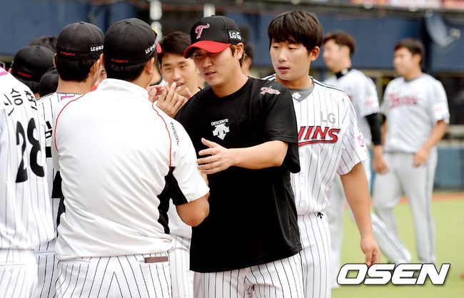 승리 투수가 된 우규민이 코칭스태프 및 팀 동료들과 인사를 나누고 있다./dreamer@osen.co.kr