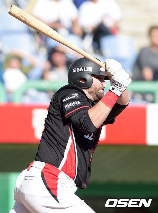 4회초 2사에서 kt 댄블랙이 우전 2루타를 치고 있다.