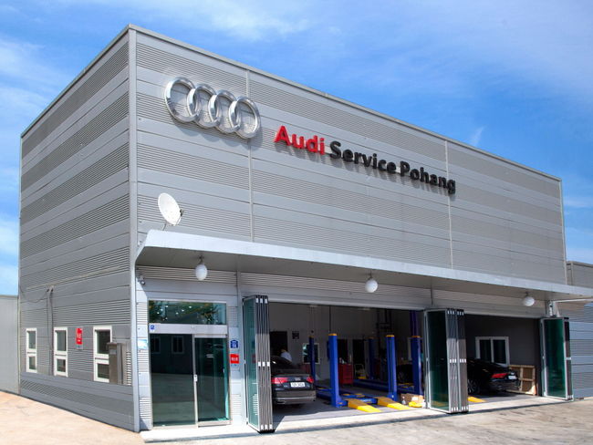 연면적 859m2의 규모에 지상 2층의 아우디 서비스 전용 건물에 총 네 개의 워크베이를 갖추고 있어 하루 16대의 차량 경정비가 가능하다.