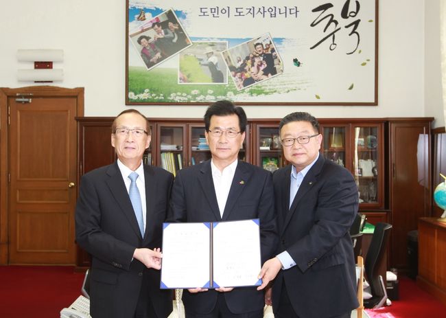 [사진] 30일 충청북도 도지사실에서 최병민 깨끗한나라 회장과(왼쪽) 이시종 충북도지사(가운데), 이필용 음성군수(오른쪽)가 제조공장 신설, 종합물류센터 건설 등을 위한 양해각서 체결 후 기념촬영을 하고 있다. /깨끗한나라 제공