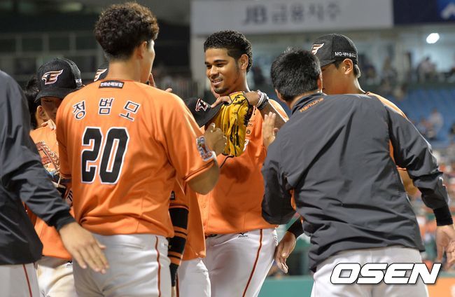 한화 선발 로저스는 7이닝 7피안타 2볼넷 1탈삼진 3실점 역투로 삼성 타선을 제압했다. 마지막 선발등판 경기에서 시즌 6승(2패)째를 따냈다. 크게 힘들이지 않고 맞혀 잡는 투구로 마지막 홈경기를 장식했다. KBO 데뷔 후 10경기에서 6승을 거두는 위력을 떨쳤다.