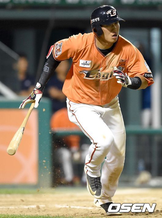 4회말 한화 공격 1사 1, 2루 상황 하주석이 적시 1타점 좌전안타를 날리고 있다.