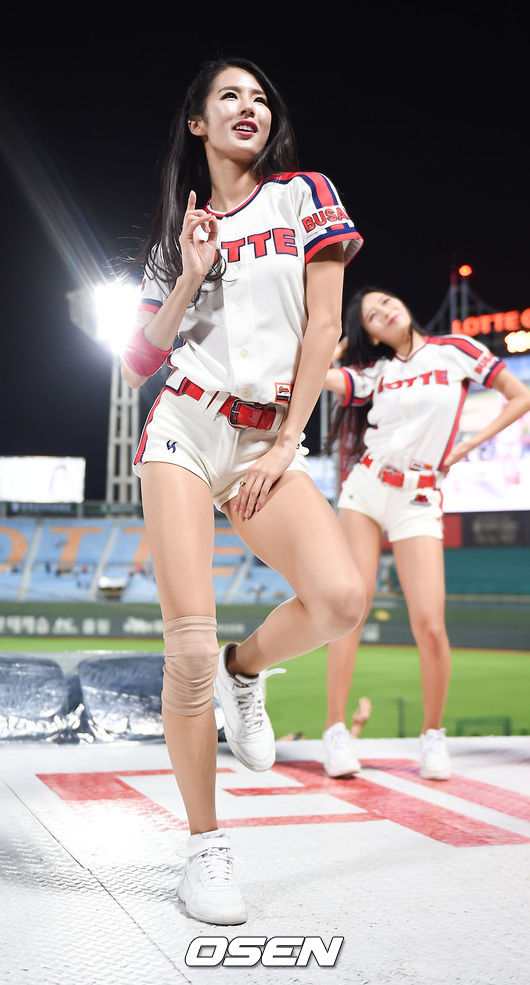 30일 오후 부산 사직구장서 열린 '2015 타이어뱅크 KBO리그' 롯데 자이언츠와 KIA 타이거즈의 경기, 롯데 치어리더가 멋진 공연을 펼치고 있다.