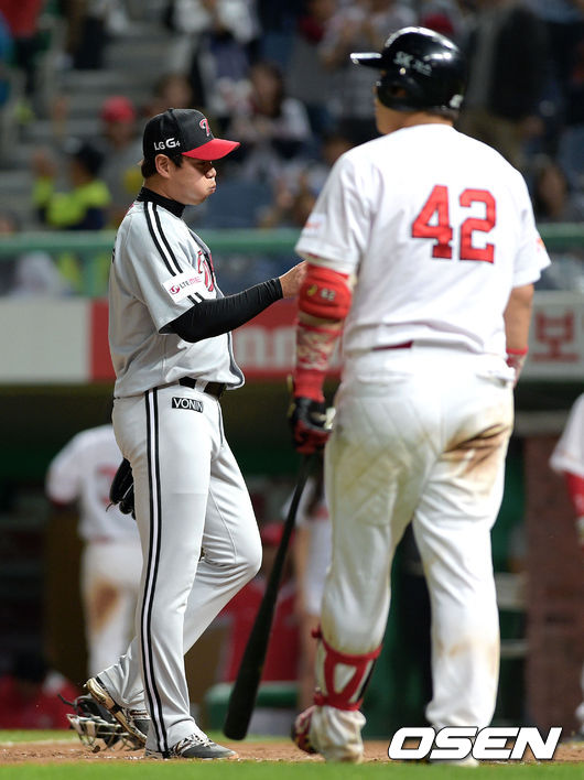 순항하던 류제국은 4회말 2실점했다. 첫 타자 박정권에게 좌월 솔로포를 맞았고, 1사 2루에서 정상호에게 중전 적시타를 허용해 1-2로 역전당했다. 그런데 나주환의 중견수 플라이에 1루 주자 정상호가 귀루하지 못해 더블플레이, 쉽게 네 번째 이닝을 끝냈다.