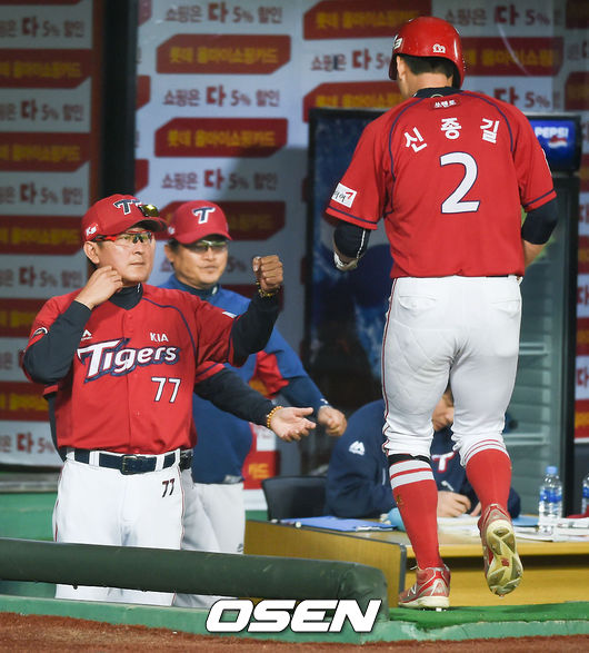 경기 후 KIA 김기태 감독은 "타선의 활발한 공격과 마운드에서 역할을 충분히 해주며 승리할 수 있었다. 이범호의 시즌 최다홈런 축하한다"고 말했다. 이날 이범호는 조쉬 린드블럼을 상대로 3회 투런포를 작렬, 시즌 27개의 홈런으로 2005년 26홈런을 넘어섰다. /cleanupp@osen.co.kr