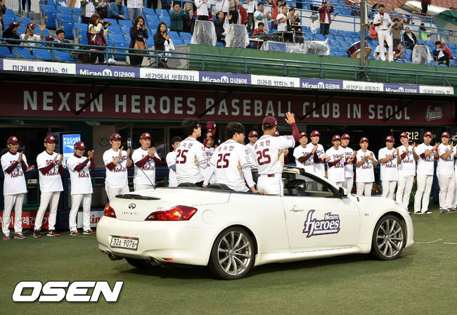 한편 이날은 한화에서 입단하고 넥센에서 은퇴한 레전드 송지만 현 넥센 2군 타격코치의 은퇴식이 열렸다. 송 코치는 1996년 한화에서 데뷔해 꾸준한 성적으로 '황금 독수리'라는 애칭을 얻었으나 2004년 넥센으로 팀을 옮겨 지난해 은퇴했다. 은퇴식은 한화전에서 하고 싶다는 본인의 의사가 반영됐다. / rumi@osen.co.kr