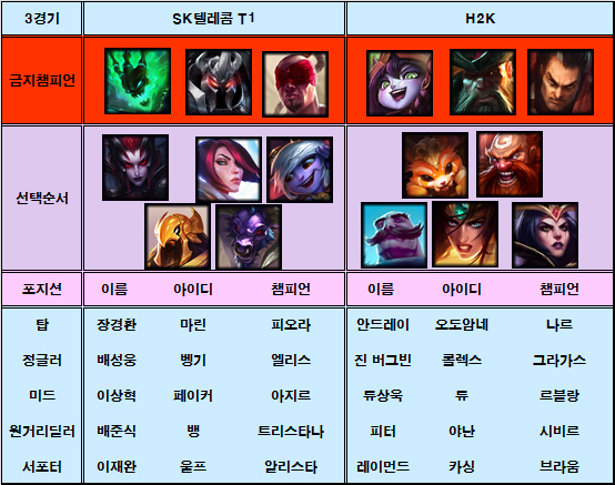 초반 분위기는 팽팽했다. '벵기' 배성웅이 일찌감치 라인 급습을 통해 '마린' 장경환에 힘을 실어줬지만 H2K도 탑 지역의 3대 3 한 타와 과감한 3대 1 탑 다이브를 통해 킬 스코어의 균형을 2-2로 맞추었다. 여기다가 H2K는 중앙 3대 3 대치구도에서 '페이커' 이상혁의 아지르를 제압하면서 킬 스코어에서 3-2로 앞서나가는 모습까지 보였다.