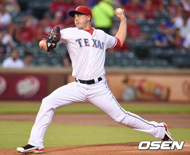 1회초 텍사스 홀랜드가 역투하고 있다.