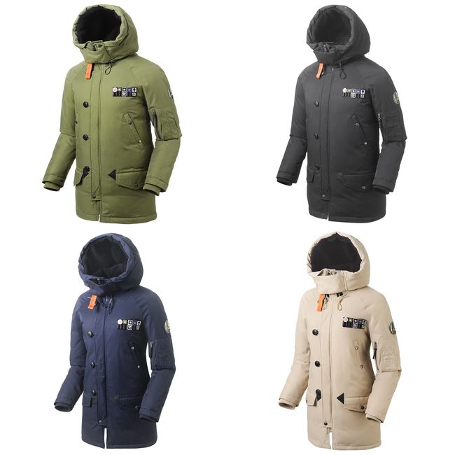 [사진] 네파X아이콘 보머다운 남성용(좌측부터 블랙, 다크오렌지, 그리니쉬브라운), '네파X아이콘 보머다운' 여성용(좌측부터 블랙, 그리니쉬브라운), 네파X아이콘 야상다운(상단 카키, 블랙(남성), 하단 베이지, 네이비(여성)) / 네파 제공