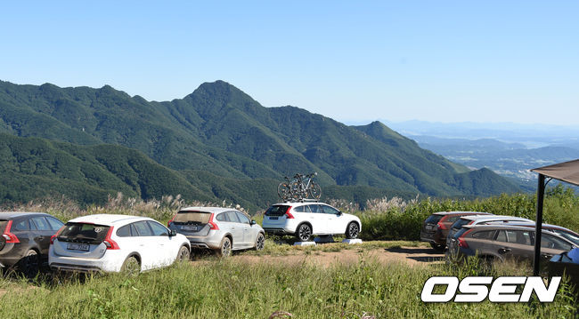 새로 출시 된 볼보 크로스컨트리는 허연 먼지를 밀가루처럼 뒤집어쓰고도 뒹굴뒹굴 잘도 올라갔다. 등산(?)을 앞두고 잘 닦인 포장도로를 쉼 없이 달려왔던 차다. 흔들리는 차에 몸을 맡기고 터널 같은 숲길을 한참을 올라갔다. 마침내 하늘이 열리는가 싶더니 탁 트인 가을 하늘이 일행을 맞았다. 먼 산 봉우리들이 손에 잡힐 듯 가까이 보인다. 이런 길을 ‘세단 같지만 세단이지 않은 차’를 타고 올라오다니….