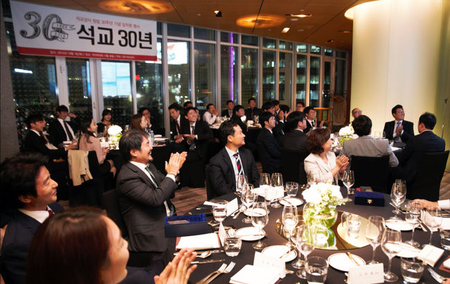 석교상사(대표 이민기)가 지난 1일 파크하얏트 서울 호텔에서 창립 30주년 기념 행사를 임직원들과 함께 했다. 이날 국내 골프 업계에서 최장수 기업인 석교상사의 수장인 이민기 회장은 평소의 소박한 성격에 맞게 창립 30주년 기념과 영광을 50여 명의 임직원들과 함께 나눴다.