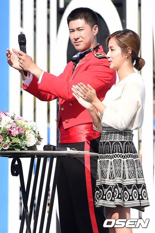 개막식 사회자로 나선 그룹 동방신기 정윤호와 방송인 최송현이 박수를 보내고 있다.