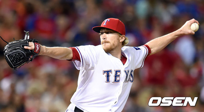 텍사스 제이크 디크먼이 역투하고 있다.