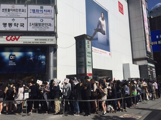 [사진] 명동중앙점 매장 바깥에서 '유니클로 앤드 르메르' 콜라보레이션 컬렉션을 구매하려는 소비자들이 대기줄을 이루고 있다. /유니클로 제공