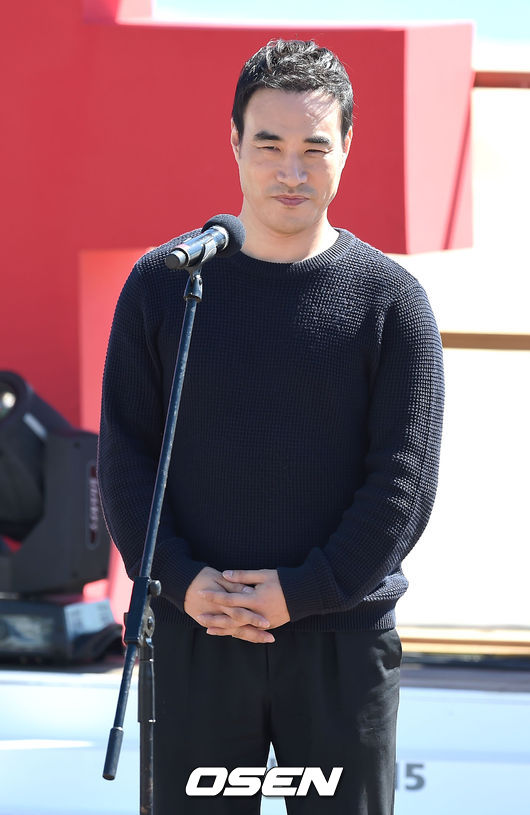 1일 오후 부산 해운대 비프빌리지 야외무대에서 진행된 영화 '특종' 무대인사에서 배성우가 미소짓고 있다.