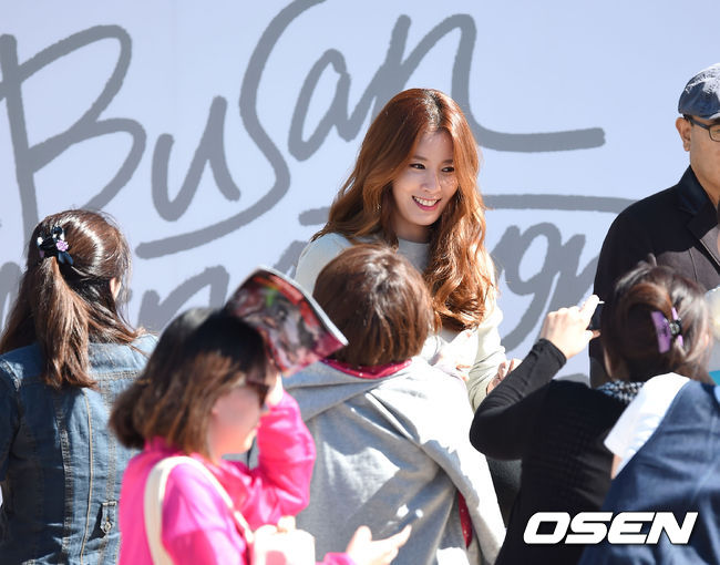 1일 오후 부산 해운대 비프빌리지 야외무대에서 진행된 영화 '두번째 스물' 무대인사에서 이태란이 무대로 들어서면서 팬들과 눈인사를 하고 있다.