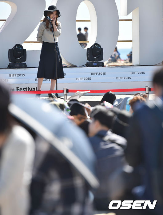 2일 오후 부산 해운대 비프빌리지에서 열린 영화 '비밀' 야외무대인사에서 이태란이 취재진을 바라보고 있다.
