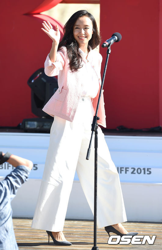 1일 오후 부산 해운대 비프빌리지 야외무대에서 진행된 영화 '무뢰한' 무대인사에서 전도연이 무대로 들어서고 있다.