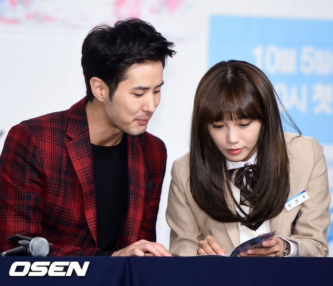 2일 오후 서울 영등포 타임스퀘어 아모리스홀에서 열린 KBS2TV 월화드라마 '발칙하게 고고'(극본 윤수정, 정찬미/연출 이은진) 제작발표회서 김지석과 정은지가 팜플렛을 보며 얘기를 나누고 있다.