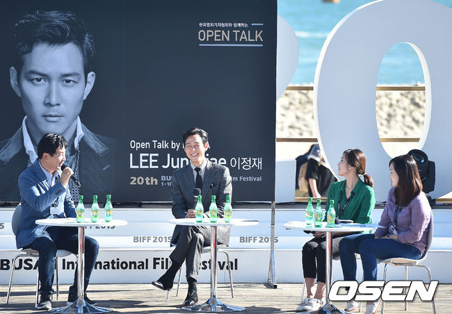 2일 오후 부산 해운대 비프빌리지에서 열린 '야외오픈토크'에서 이정재가 관객들을 보며 미소짓고 있다.