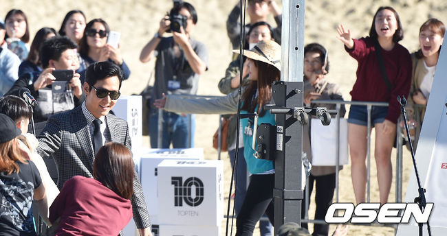 2일 오후 부산 해운대 비프빌리지에서 열린 '야외오픈토크'에 이정재가 입장하고 있다.