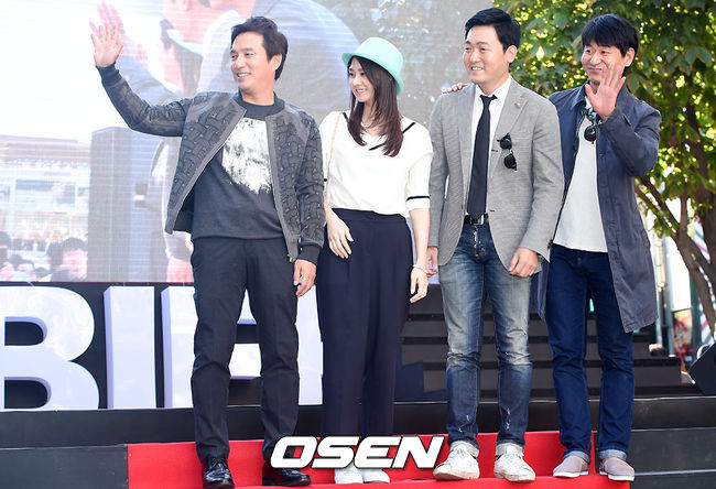 2일 오후 부산 남포동 BIFF광장 야외무대서 열린 영화 '나홀로휴가'(감독 조재현) 무대인사에서 조재현 감독과 출연배우들이 포즈를 취하고 있다.