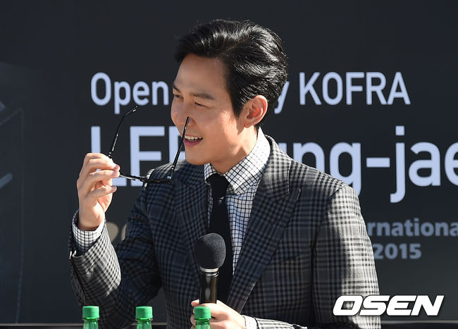 1일 오후 부산 해운대 비프빌리지 야외무대에서 진행된 '이정재 오픈토크'에서 이정재가 선글라스를 벗고 있다.