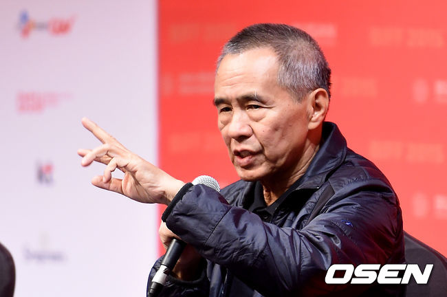 허우샤오시엔 감독이 질문에 답을 하고 있다.