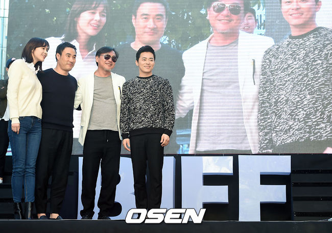 2일 오후 부산 남포동 BIFF광장 야외무대서 열린 영화 '특종: 량첸살인기'(감독 노덕) 무대인사에서 출연배우들이 포즈를 취하고 있다.