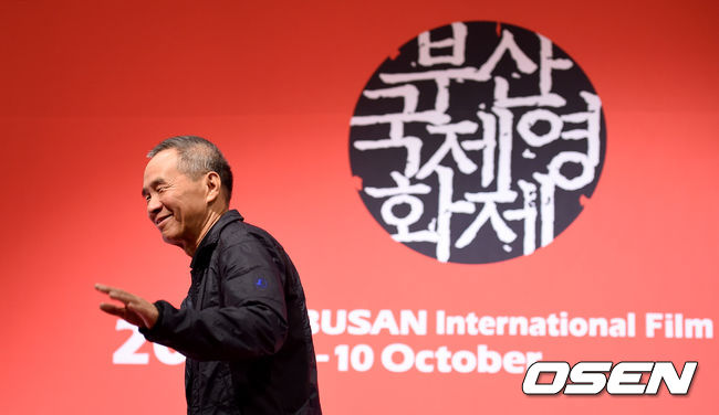 허우샤오시엔 감독이 포토타임을 마치고 미소를 지으며 무대를 나서고 있다.