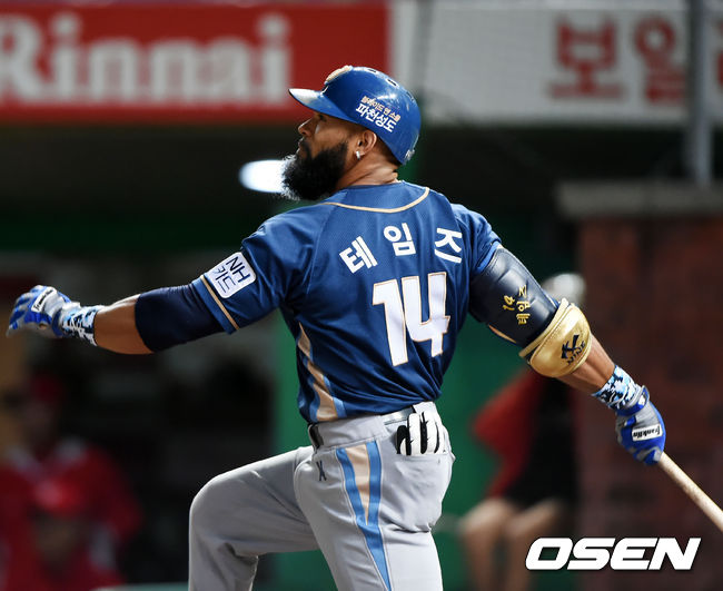 2일 오후 인천 SK행복드림구장에서 열린 '2015 타이어뱅크 KBO 리그' SK 와이번스와 NC 다이노스의 경기, 1회초 1사 주자 1,2루 NC 테임즈가 중월 선취 스리런 홈런을 날리고 있다.