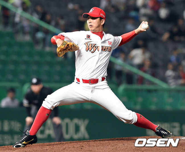 2004년 SK에서 1군에 데뷔한 정우람은 2006년 82경기, 2008년 85경기에 등판하는 등 SK 불펜의 핵심으로 활약해왔다. 이날 경기 전까지 기록은 37승21패62세이브128홀드 평균자책점 2.84다. /skullboy@osen.co.kr