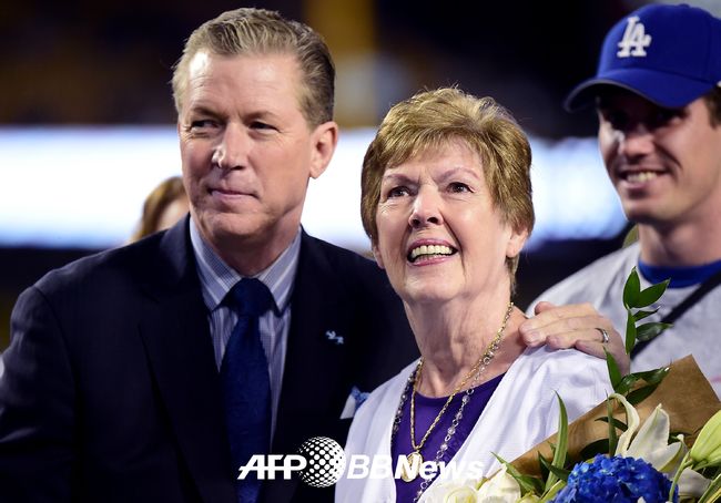 3일(이하 한국시간)헤플리 씨는 다저스타디움에서 열린 샌디에이고 파드리스와 원정경기에 앞서 가족들이 참가한 가운데 은퇴기념행사를 가졌다. 행사에서는 다저스에서 명투수로 이름을 날렸던 오렐 허샤이저(사진 좌측)이 기념 꽃다발을 전달했다.