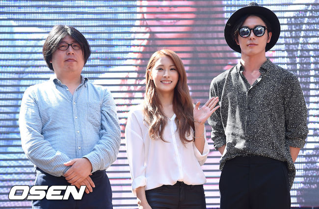 3일 오후 부산 남포동 BIFF광장 야외무대서 열린 영화 '거꾸로 가까이 돌아서' 무대인사에서 조성규감독, 박규리, 김재욱이 포토타임을 하고 있다.