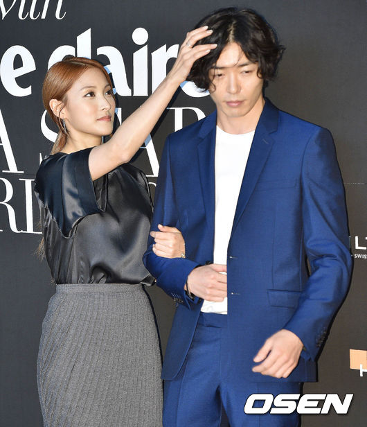 3일 오후 부산 해운대 그랜드호텔에서 열린 '마리끌레르 아시아 스타어워즈'에서 박규리와 김재욱이 포토타임을 갖고 있다.