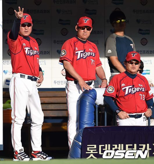 9회초 KIA 공격 2사 1루 상황 김기태 감독이 작전 지시를 내리고 있다.