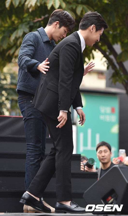 4일 오후 부산 남포동 BIFF광장 야외무대서 열린 영화 '스물' 야외무대인사에서 김우빈과 강하늘이 퇴장하고 있다.