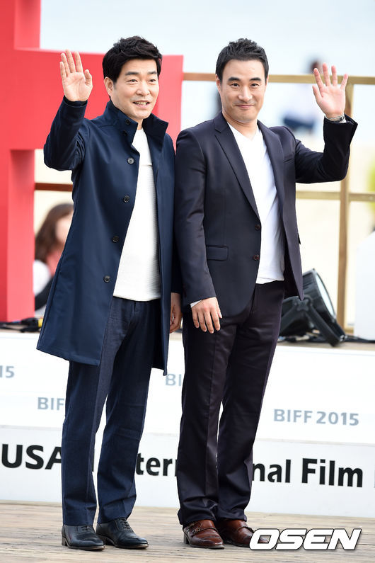 4일 오후 부산 해운대 BIFF 빌리지에서 열린 영화 '더 폰' 야외무대인사에서 배우 손현주, 배성우가 포토타임을 하고 있다.