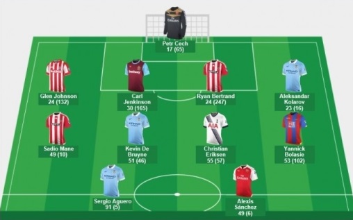 아게로와 산체스가 앞선에 이름을 올렸다. 아게로는 뉴캐슬 유나이티드전서 20분 만에 5골을 몰아치며 6-1 대역전승을 이끌었다. 산체스는 맨유전서 2골을 넣으며 3-0 완승의 주역이 됐다.